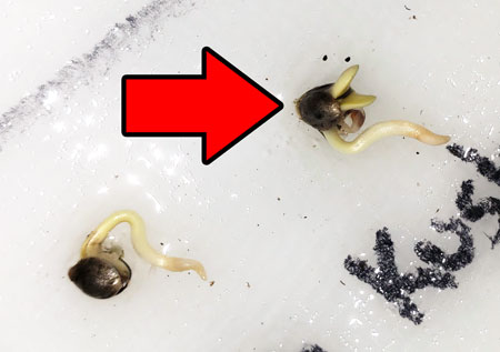 Durante la germinación la cubierta protectora de la semilla se abre y permite que surja el extremo de la raíz central, un diminuto brote blanco llamado astrogrowshop.dlds.cl/blog/diccionario-cannabico/" target="_blank">radícula. Al mismo tiempo, los cotiledones y las hojas seminales emergen del interior de la cáscara al empujar hacia arriba en busca de luz.